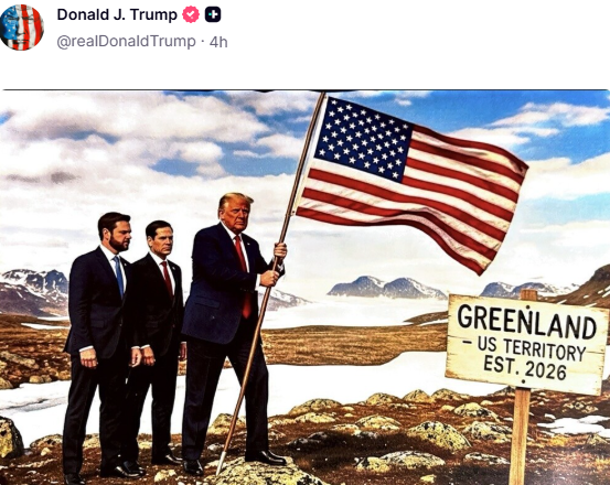 “As I expressed to everyone, very plainly, Greenland is imperative for National and World Security. There can be no going back — On that, everyone agrees! The United States of America is the most powerful Country anywhere on the Globe, by far. We are the only POWER that can ensure PEACE throughout the World — And it is done, quite simply, through STRENGTH! ” Trump wrote.